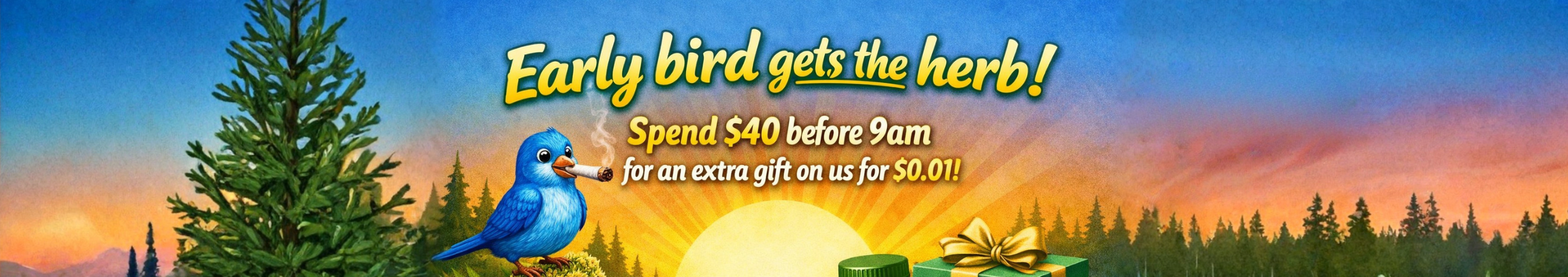 Cannabis Promo, Cannabis Sales, Cannabis Discounts, Cannabis on Sale, Early Bird Gets the Herb! Spend $40 Before 9A.M. for Extras!
